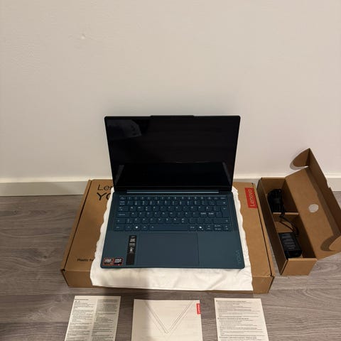 Sparsamt använd kraftfull laptop med massor av smarta funktioner (läs mer på länkade hemsidor nedan/gör din egen research/kolla YouTube). Intel Core Ultra 7 258V processor, Intel Arc 140V grafik, 32 GB RAM, 1 TB SSD. Bra batteritid, tyst, mångsidig, förstklassig högtalare, låg vikt, vacker touchskärm & chassi med rundad design ger skön och lättsam surfplattekänsla... Medföljande penna, laddare och nätt dockningsstation (hdmi, 2 x usb-a, hörlur/mikrofon). Copilot+ PC. Aura Edition. Färg: Cosmic Blue.