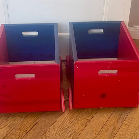 Säljer två stycken påsar som går att dra ut så de blir som en matta. Då kan man leka på den eller använda som ”legohav” med massa legobitar eller andra leksaker. När man drar i snöret så drar man ihop mattan till en påse. Bra för förvaring.