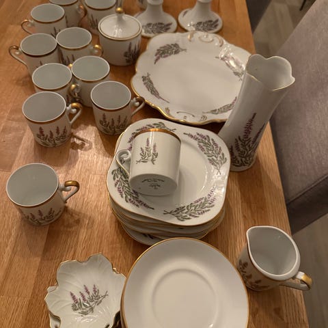 Servisen som endast haft i dekorativt syfte, stått i vitrinskåp.