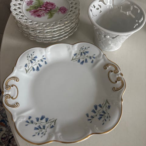 Söt kruka.med mönster och handtag rosor på sidorna