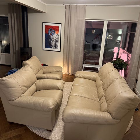 Natuzzi , ett Italienskt kvalitetsmärke. Mått: 370 x 290 cm (som på bild) . Går att vända höger eller vänster. Varje sektion är 80 cm och det går att ta bort någon om man vill.