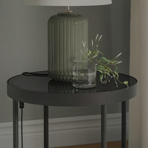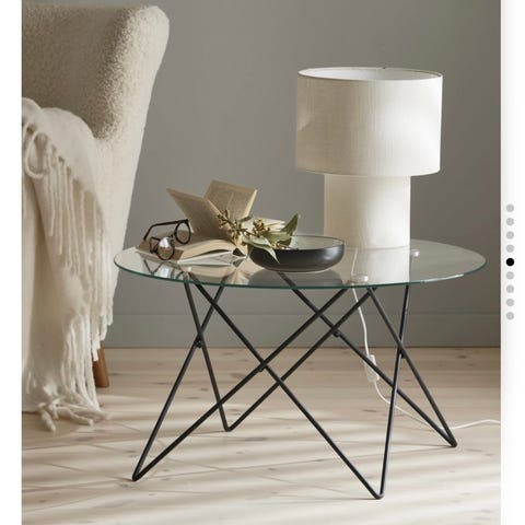 Pulverlackerat metallbord, litet bord i unik stil, med förvaringsplats nedtill för tidningar, böcker eller en pläd.