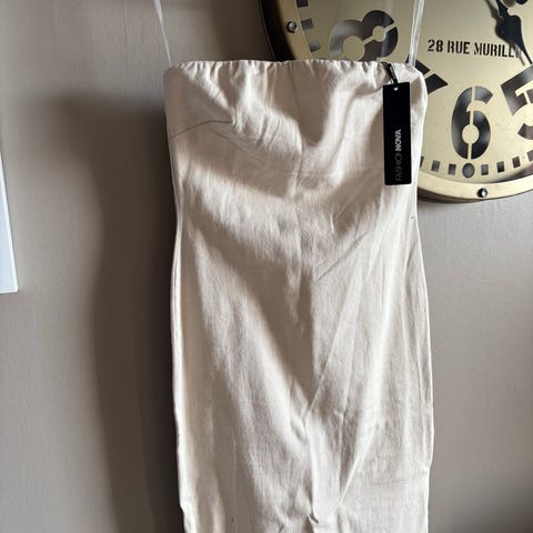 Zara festklänning i satin för dam. Klänningen är rosa och i storlek XS. Modellen har smala axelband och v-ringad halsringning fram och bak. Materialet är satin med slät, lätt glansig yta. Lämplig som fest- eller kvällsklänning.