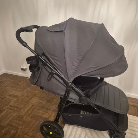 Petite Chérie åkpåse i grön färg. Åkpåsen är fodrad för att hålla barnet varmt i barnvagn eller sulky. Utsidan är i ett tåligt material och insidan har mjuk, ljus textil. Huvan har kant med fuskpäls och det finns öppningar för säkerhetssele så att åkpåsen kan fästas i vagnen. Passar för användning under kallare väder i barnvagnsmiljö.
