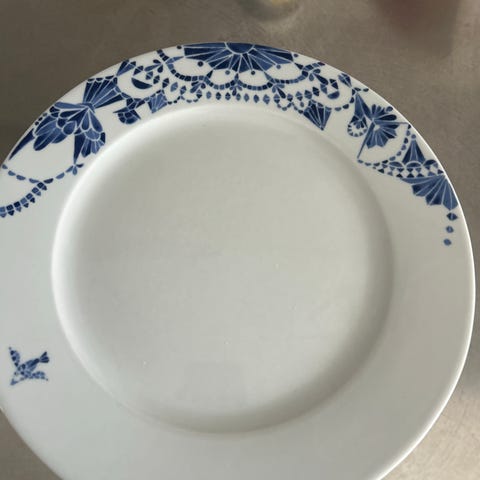 Porslinstallrik Konungamötet Malmö 1914 blåvit dekor