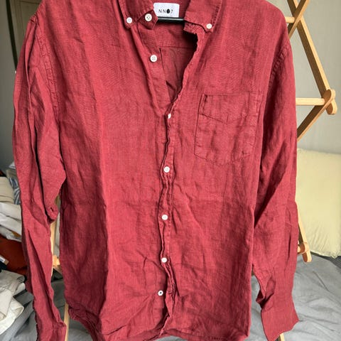 Matinique skjorta för herr i storlek L. Skjortan är tillverkad i linne och har ett flerfärgat randigt mönster i ljusa toner. Klassisk krage, lång ärm med manschett och knappstängning framtill. Passar som vardags- eller fritidsskjorta.