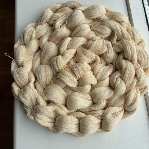 Varpfläta, påsk, bomullsgarn 16/2 gult, drygt 7,5 m lång , väva handdukar