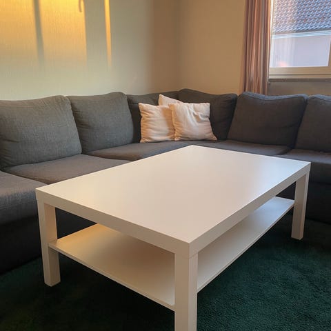 Finns en liten reva utmed ena kanten - inget som påverkar särskilt mycket och som såklart enkelt kan målas över om man så önskar. Bordet är inte särskilt tungt.