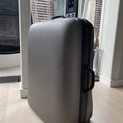 Fila kabinväska i hård plast. Väskan har utdragbart teleskophandtag och två hjul för enkel transport. Yttermaterialet är grått med Fila-logga på framsidan och röd detalj runt öppningen. Invändigt finns flera fack och fickor för organisering samt kryssade packningsband i rött för att hålla innehållet på plats. Passar som mindre resväska eller kabinväska beroende på flygbolagets måttregler.