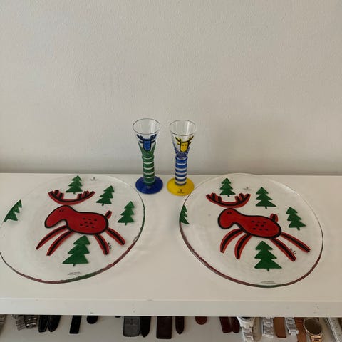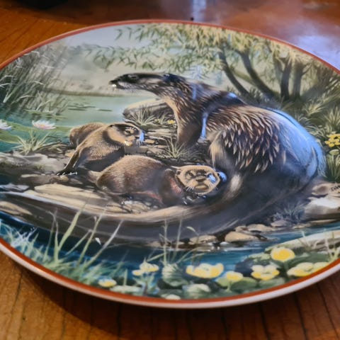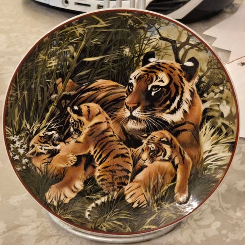 Tre handmålade tallrikar med djurmotiv i originalförpackningar. 250:- styck eller 600:- för alla