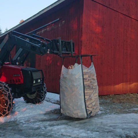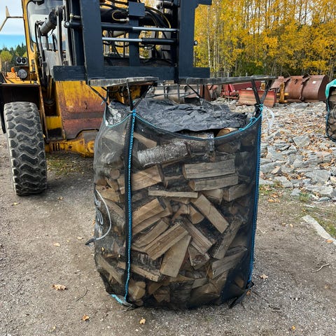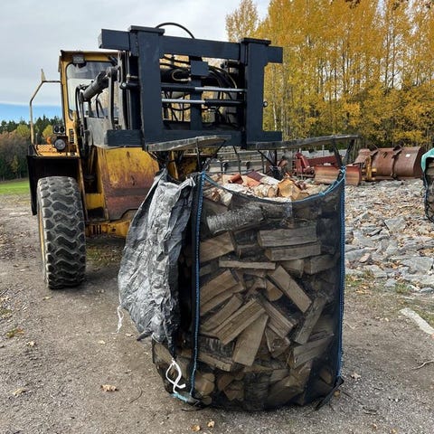Färsk, ny kluven Björkved säljes i storsäck eller löst på släpvagn