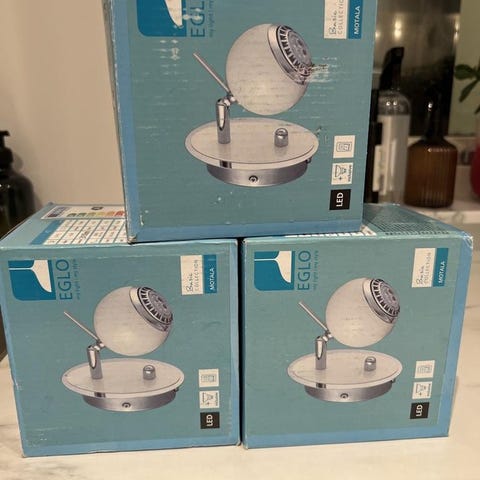 Varje lampa har en väggfäste som man skruvar i väggen.