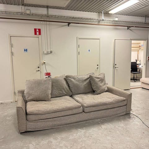 Tre Grå Howard soffor med fotpall i gott skick, ingen skador eller Fläckar och fel , fräscht och Ren. Djur & rökfritt. Avtagbar tvätt klädsel på dynor.
