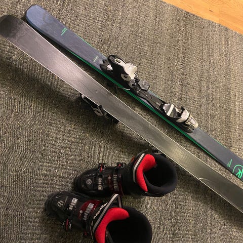 Powah alpinskidor med bindningar vit rosa. Bindningar Rossignol