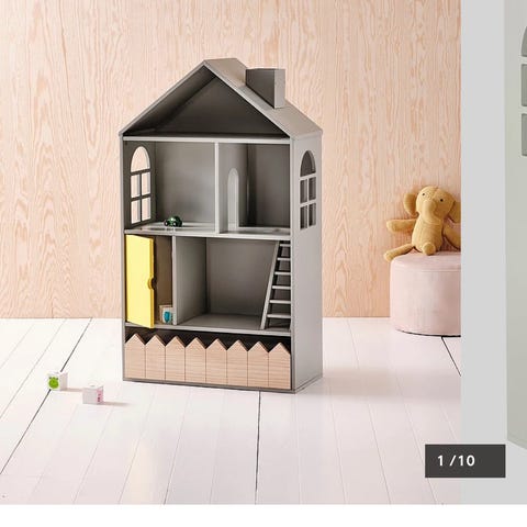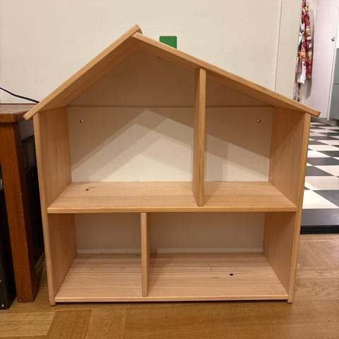IKEA dockskåp i trä. Huset har flera rum i två våningar och är öppet framtill för lek. Passar som dockhus eller för förvaring av mindre leksaker i barnrum.