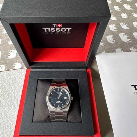 Tissot herrklocka med blå urtavla och boett i metallfärg. Klockan har ett integrerat länkarmband i stål och analog visning med tim-, minut- och sekundvisare. Klassisk rund boett och enkel, stilren urtavla med indexmarkeringar. Levereras med originalask enligt bild. Passar som vardags- och kontorsklocka för herr.