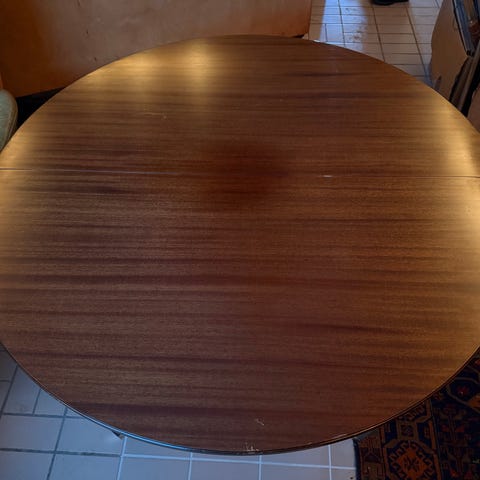 Matsalsgrupp engelsk stil, mahogny. Stolarna i Hepplewhite-stil.