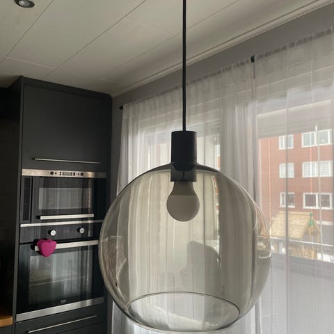 Två matchande taklampor i olika storlek av märket Terho Pendel Svartbetsad. Den stora har diameter 30,5 cm och den mindre är 13,5 cm. Väldigt gott skick och fina.