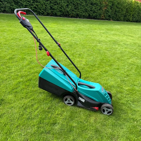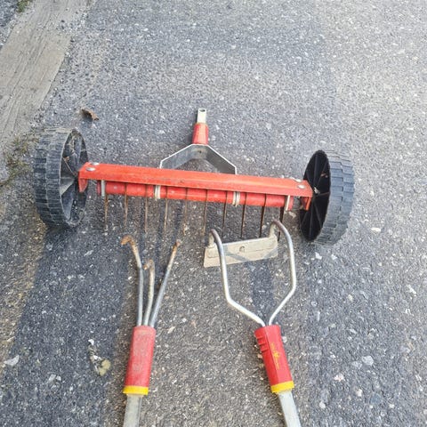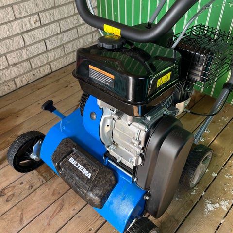 Parkside elektrisk vertikalskärare i grön färg. Vertikalskäraren är avsedd för skötsel av gräsmattor och hjälper till att lufta och rensa gräset från mossa och filt. Utrustad med uppsamlare och handtag med kabelhållare för elanslutning. Passar för användning i trädgårdar och på gräsmattor runt bostadshus. Nypris 999 kronor, köpt maj 2025, kvitto finns. Använd en gång.