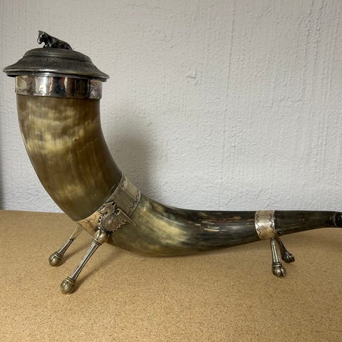 Okänt märke dryckeshorn horn naturfärg med metallband