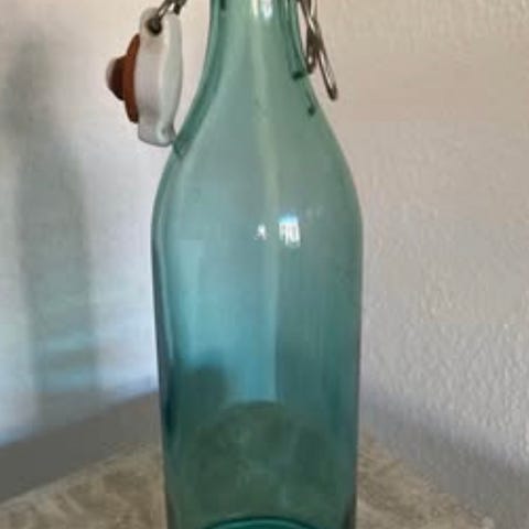 Åhléns Home glasflaska med bygelkork i brun glas. Flaskan har en klassisk bygelkork i plast och metall som ger tät förslutning. Passar för förvaring av drycker som vatten, saft eller öl samt för hemmabryggning eller servering vid bordet.