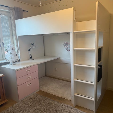 IKEA Småstad loftsäng med skrivbord och förvaring vit
