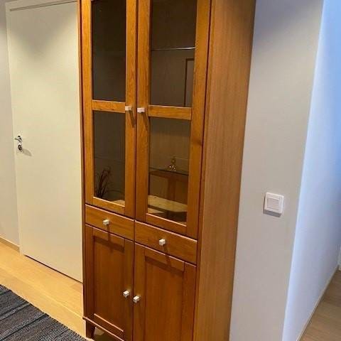 Stilrent hyllsystem och vitrinskåp med belysning. Väldigt fint skick!