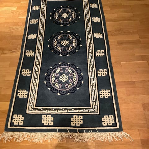 Äkta Kinamatta i storlek 210x125 med vita fransar.