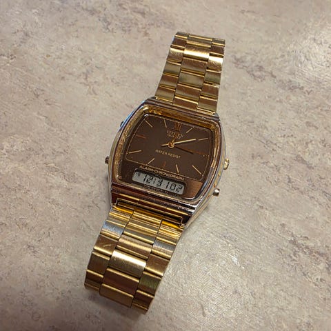 Citizen Quartz Crystron LC 4-097122 TA är en vintage-klassiker från en spännande period i klockhistorien, perfekt för dig som vill ha något med retro-känsla, japansk precisionsklockteknik och karaktär. Den är mer av ett samlarobjekt än en modern klocka med alla senaste funktioner, men erbjuder en charmig mix av stil och mekanisk/kvarts-historia.