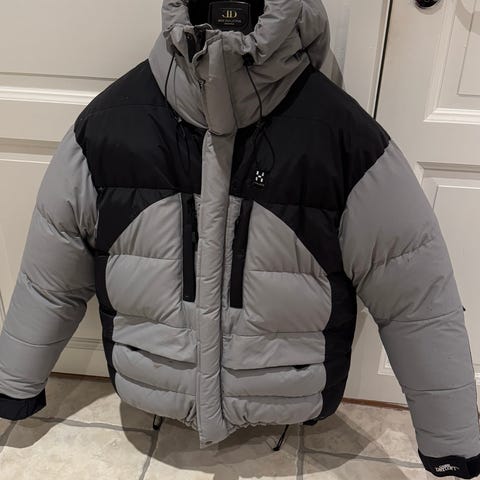Columbia dunjacka för herr i storlek XXL. Jackan är svart med mönstrade partier och har vaddering med dun för värme. Ytterjacka avsedd för utomhusbruk, med huva och hel dragkedja framtill. Passar som vardags- och fritidsjacka i kallare väder.