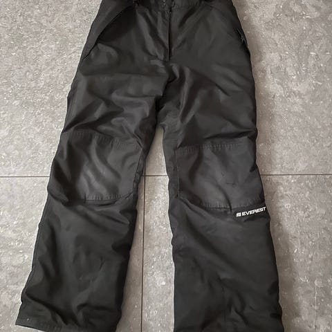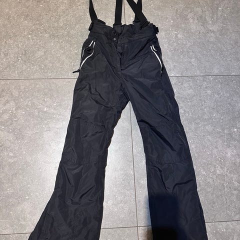 The North Face skidbyxor för barn i unisexmodell. Byxorna är svarta och tillverkade i polyester. Storlek junior Large, användes förra året av medelstor 12-årig tjej. Utrustade med hängslen och hel längd på benen, lämpliga som ytterbyxa vid vinteraktiviteter och utomhuslek.