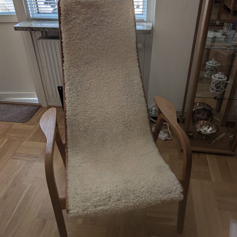 Köpes renoveringsobjekt Lamino fötölj i ek med teakarmstöd