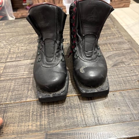 Alico kängor i svart läder i storlek 40. Kängorna har snörning framtill och kraftig sula med grovt mönster. Tillverkade i Italien. Passar för utomhusbruk där stabilitet och stöd önskas.