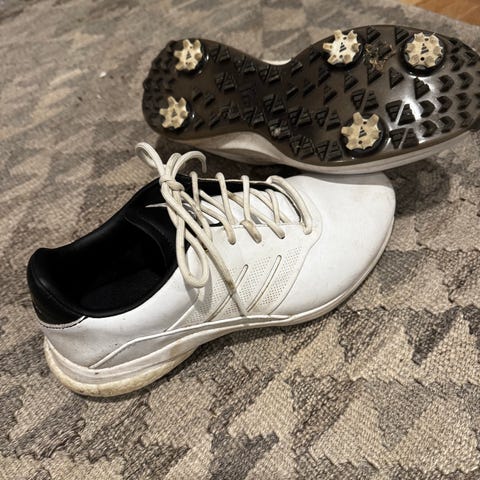 FootJoy DryJoys Premier golfskor i storlek 44. Skorna är vita och tillverkade i läder med klassisk brogue-detaljering. Yttersulan har utbytbara softspikes för grepp på golfbanan. Snörning framtill och vadderad insida för stabil passform. Passar för golfspelare som söker traditionellt utseende kombinerat med modern golfsula.
