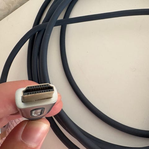 Oanvänd, dock verkar det som på ena bilden att lite färg har lossnat från kabeln vid ena kontakten.
