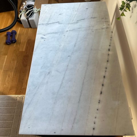 Soffbord säljes pga flytt. Marmorn har några vattenfläckar och avtryck från glas o dylikt, därav priset. Skivan har inga skador och fläckarna syns i direkt sol.