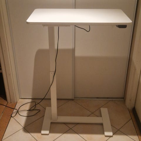 Säljer ett elektriskt höj och Sänkbart skrivbord. Det fungerar utmärkt och har en vit laminatskiva på som gör den lättare att torka rent och svårare att repa. Under bordet finns ett kabeldike som man kan gömma alla kablar I. Har även en låda I metall som jag blivit av med nyckeln till. Vill man kunna låsa lådan är det lätt att byta låscylinder.