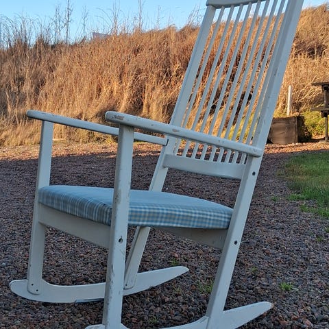 Svart gungstol. I gott skick. Mindre ställe där färg saknas - se bilder.