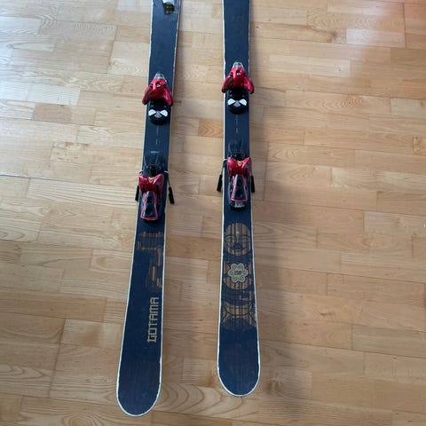 Längd på skidorna (171 cm), skidorna är i bra skick med inga större repor. En lagning har gjorts längst ned på skidan (se på bild 6). Inget i övrigt som påverkar åkandet.