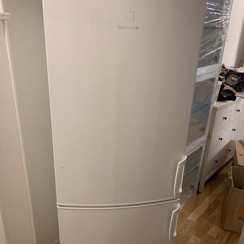 Whirlpool kyl frys i vit färg. Kombinerad kyl och frys med frysdelen placerad nedtill. Front i vit färg med integrerat handtag och digital panel på ovandelen av dörren. Inga repor framtill på dörrarna, finns repor på sidorna.