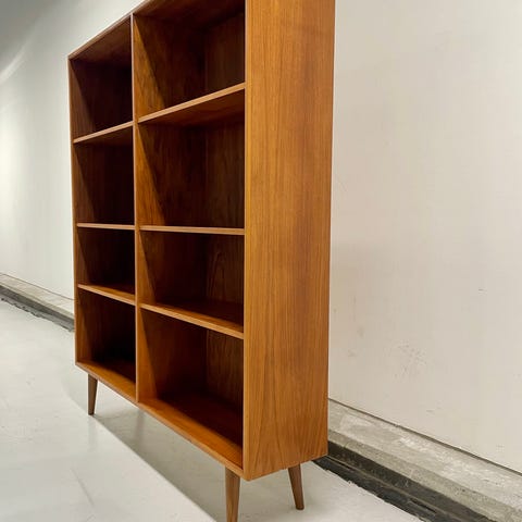 Fin bokhylla i teak. Bra skick för sin ålder. Hämtas i Västertorp eller levereras för 500 kr. Hyllplanen går att ta ut/flytta förutom det i mitten.