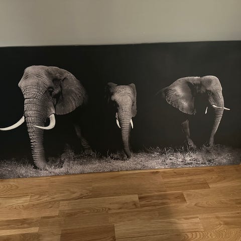 Tryckt väggdekoration i (plast-) canvas 21x30 cm. Kan tex ramas in.