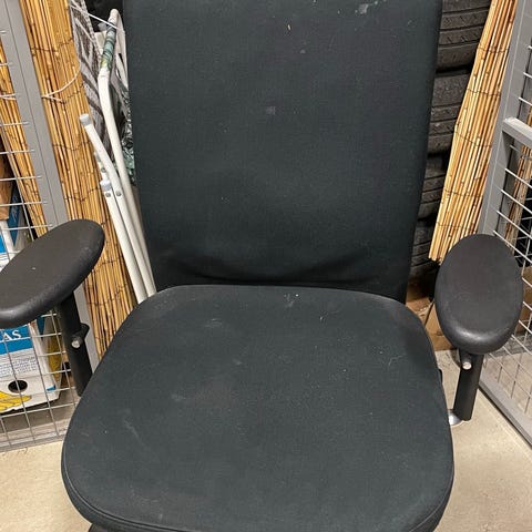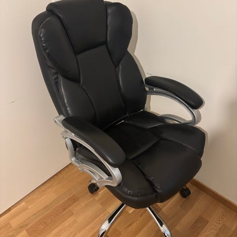 Ett stort skrivbord med hörndesign samt en kontorsstol Markus från IKEA. Stolen har några fläckar på sitsen och skrivbordet har ett riktmärke. 1000 kr för båda