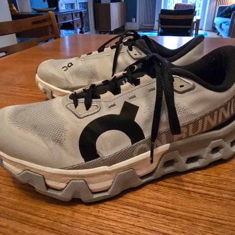 On Cloudeclipse - Löparskor med väldigt mycket dämpning. Har ca 300km på kontor så ska funka betydligt längre. Synliga flaws där hälkappan fått sig en törn, går att lagas med ”lagkapp” som finns på t.ex. Clas Ohlson billigt .