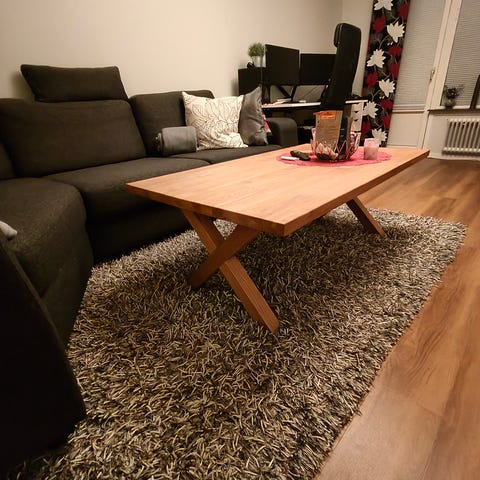 Soffbord dansk design inköpt ca 2008. Material: Vitoljad ek och ben i rostfritt stål. Mått 90x90cm. Höjd 33 cm. Bordet är i bra skick. Kollade bolia.com och det finns fortfarande att köpa och det kostar ca 10 000 nytt.
