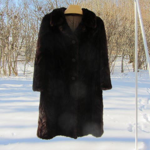 " Eicht Peltz" märke på pälsen. Mått: L 77 cm Arm 67 cm Storlek L- XL Kan bäras med skärp.