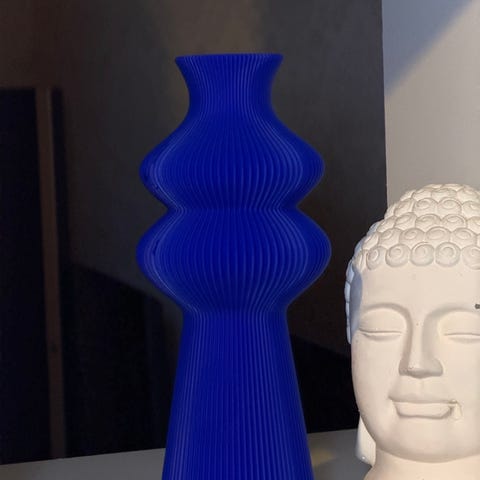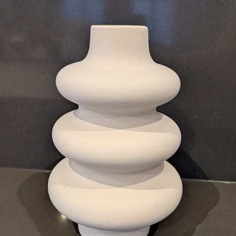 Dekorativ vas i vit färg med spiralformat räfflat mönster. Vasen har rundad form med smalare öppning upptill. Passar för snittblommor, torkade växter eller som dekoration i hemmet.höjd 175 mm