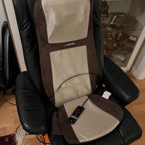 OBH Nordica Shiatsu Massage 6071 massage dyna / sits i svart utförande. Den har flera inbyggda massage punkter längs ryggen och sitsen med värme. Medföljande fjärrkontroll används för att styra olika massageprogram och zoner. Kudden kan placeras på stol eller fåtölj