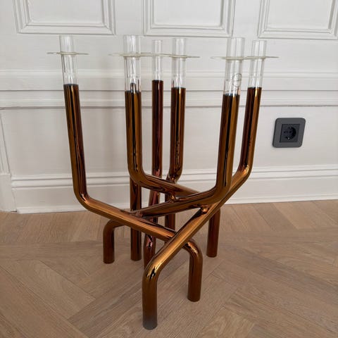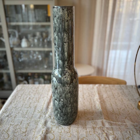 Det här är en riktig designklassiker – handblåst, tidlös. Vasen är den större modellen, höjd 42 cm och gör sig fantastiskt fin även utan blommor som skulptur. Har tyvärr mest varit nedpackad pga platsbrist.