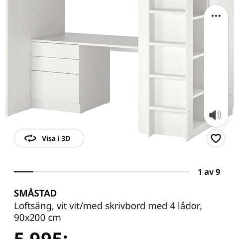 Loftsängsstomme/skrivbord/förvaring, vit